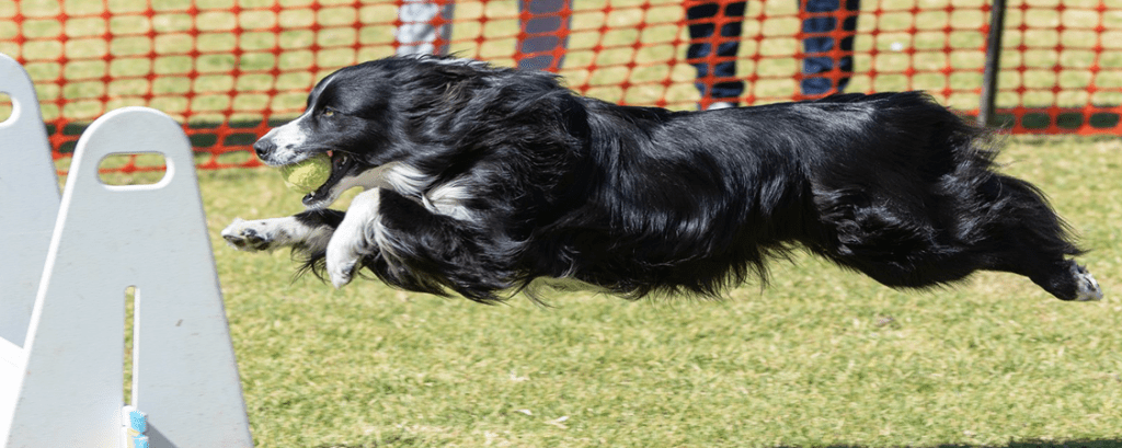 Flyball is a canine team sport which is founded on the activities that dogs love to do – run, jump, fetch, and retrieve. It consists of a relay race between two teams of four dogs. Each dog must jump over four hurdles, retrieve a ball by triggering a flyball box and then return over the hurdles to the start/finish line. The team that has the fastest time with the least amount of errors wins that race.